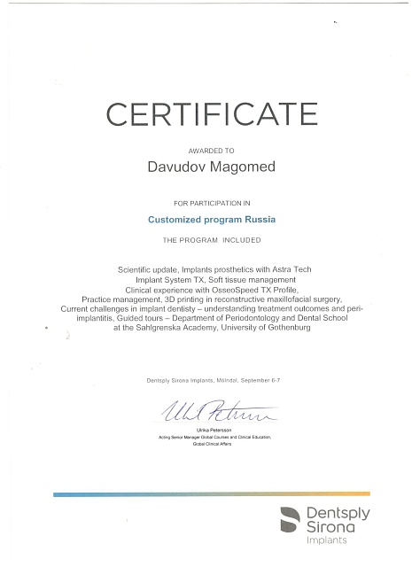 2014 г. – "Препарирование зубов для изготовления полных коронок" Гаджи Дажаев